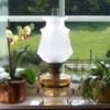 Bordsfotogenlampa med med mycket vackert skärslipat oljehus – klicka på bilden för att se den större, så syns oljehuset och kupan bättre
