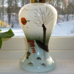 Nr 69, Ovanlig lampa med fot i opalinglas, 50,5 cm hög SÅLD