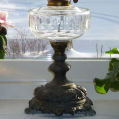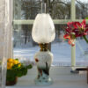 Charmig lampa med härligt olivslipat oljehus och underbar fot som troligtvis varit förgylld en gång i tiden.