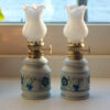Liten söt fotogenlampa i grönt glas, aldrig använd