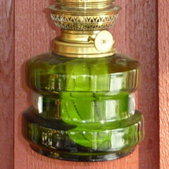 Nr 84, Mycket söt väggfotogenlampa med härligt grönt oljehus SÅLD