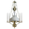 Underbart charmig takfotogenlampa med karaktär av sekelskiftet. Material gjutjärn och med 280mm Vesta skärmen, en 14”’ rundbrännare för fotogen i mitten av lampan.