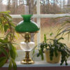 Lampa med figur och enkel opalvit skärm