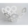 Skålen är designad och tillverkad helt i Sverige. Skuren i stål och pulverlackerad, ett mer miljövänligt alternativ än våtlackering, i olika snygga färger som Black Structure, White Pearl och Dark Blue Velvet som syns på bilden nedan.