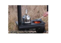 Bärbar vedspis för matlagning och värme avsedd att använda i tält eller jakttorn eller liknande.