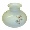 Vestaskärm med blom-motiv fattning 155 mm Munblåst överfångsglas med opalvit yta och dekaliserad med liljor. Dekaler kan blekas av stark värme tex hög värme från sol om lampan står i soligt fönster. Karlskrona Lampfabrik